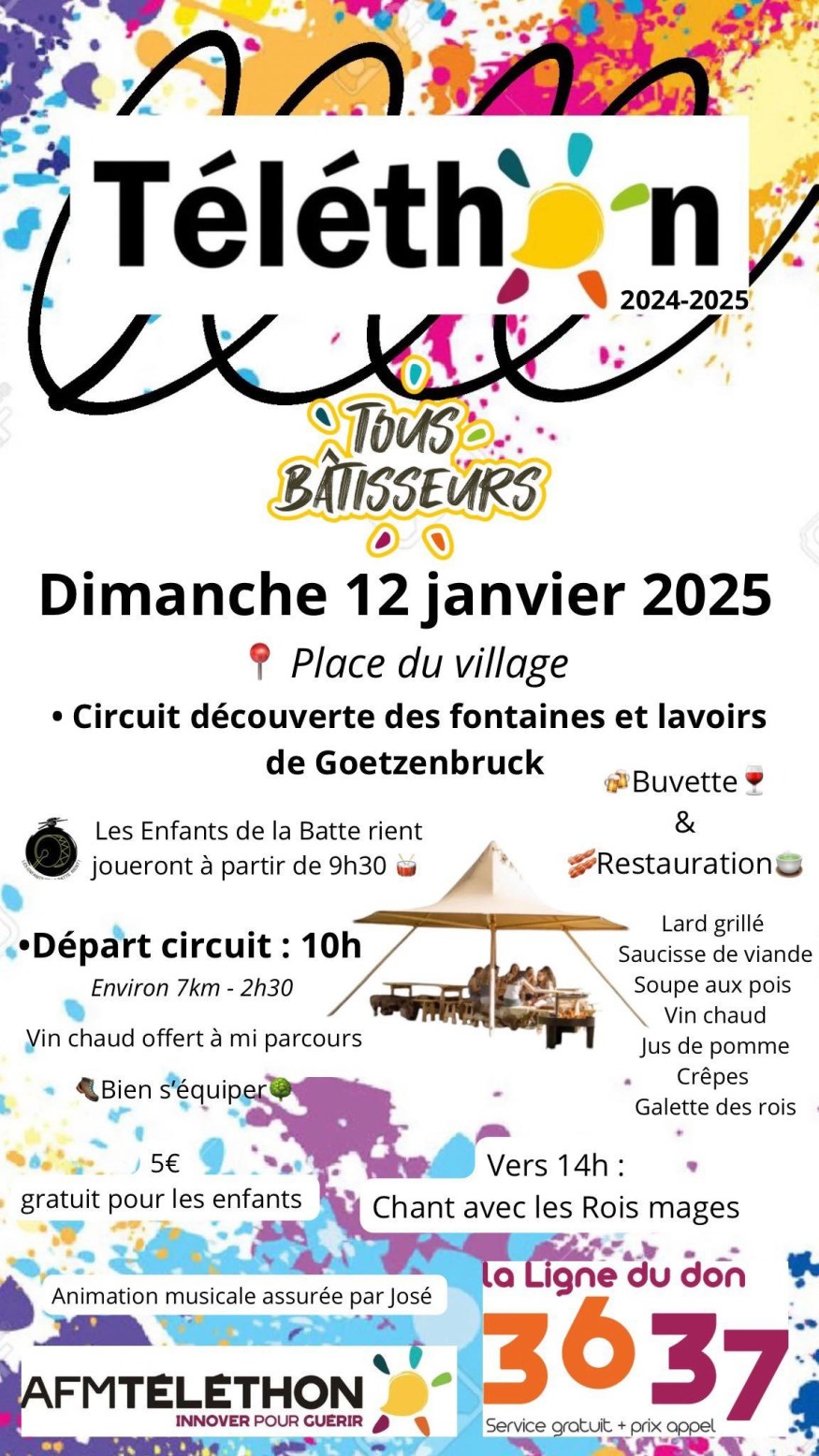 L’ensemble des bénéfices de cette journée sera reversé au Téléthon, afin de soutenir la recherche et l’accompagnement des malades. Venez nombreux.ses pour partager ce moment d’entraide et de convivialité !