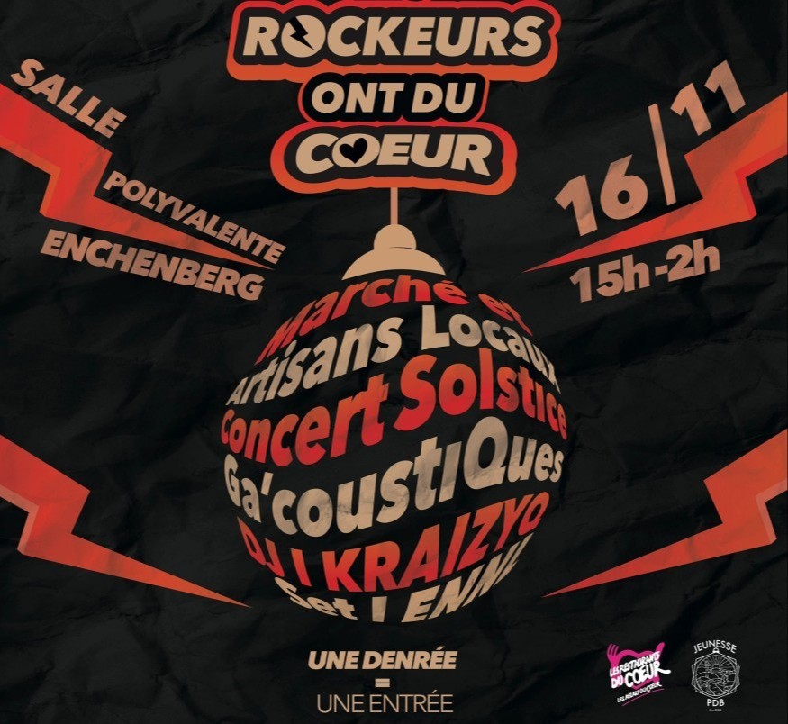 Ne manquez pas cette grande fête organisée par la Jeunesse du Pays de Bitche ! Venez nombreux pour soutenir les Restos du Cœur et profiter d’une ambiance festive au son du rock, dans un esprit de solidarité et de partage.