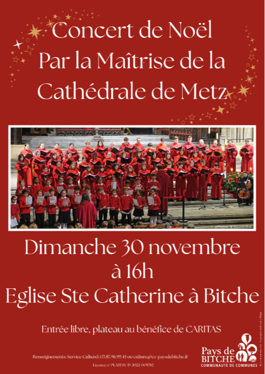 Un concert de Noël sera donné par la Maîtrise de la Cathédrale de Metz le dimanche 30 novembre à 16h, à l’église Sainte-Catherine de Bitche.