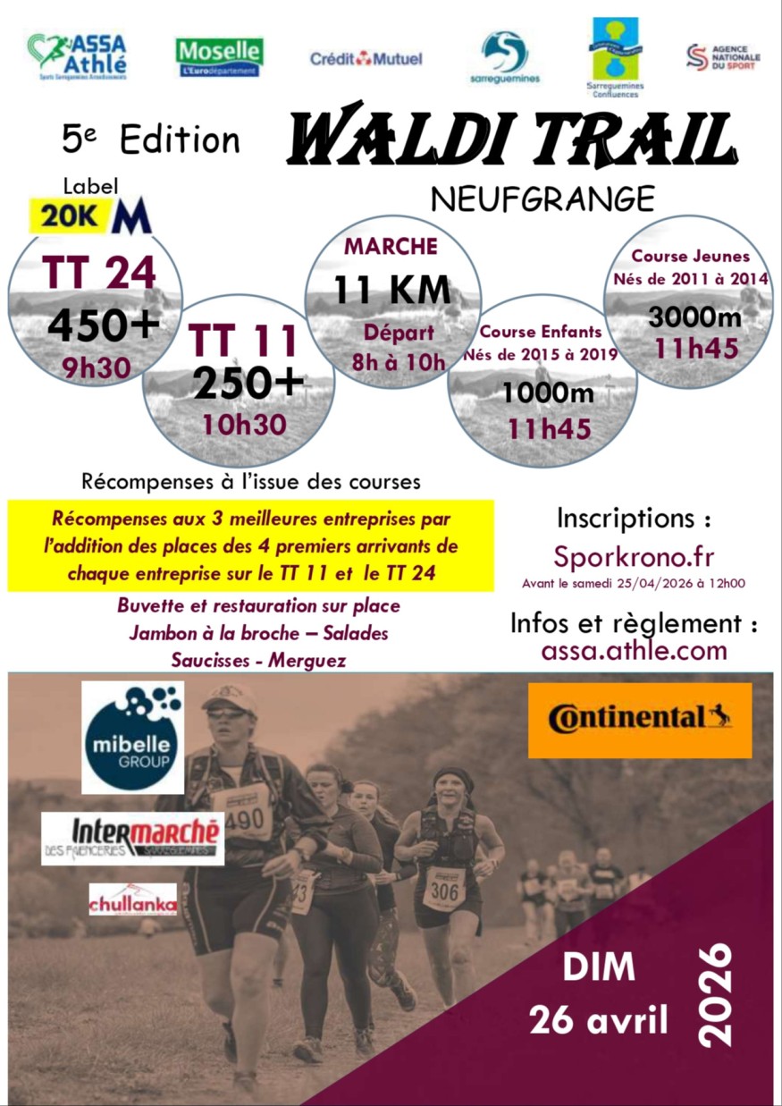 - TT 24 : trail de 24 km (450 m de dénivelé positif) – départ à 9h30
