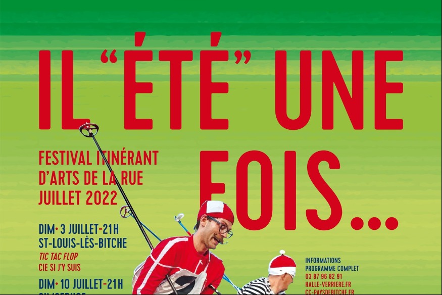 Le Festival itinérant d’arts de la rue revient pour une 17ème édition à partir de ce dimanche 3 juillet ! Cet événement a pour vocation d’amener le spectacle vivant au plus près des habitants du Pays de Bitche. Tous les dimanches soir de juillet vous pourrez admirer des spectacles en famille ou entre amis. Ce festival est organisé par la Communauté de Communes du Pays de Bitche et coordonné par le Cadhame - Halle Verrière Meisenthal.