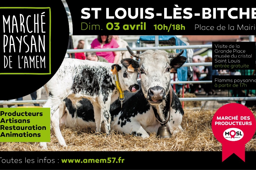 Organisé en partenariat avec la Commune de Saint-Louis-Lès-Bitche la Grande Place musée du cristal Saint Louis et avec le soutien du Conseil Départemental de la Moselle et Moselle Attractivité, le marché paysan de l’AMEM se tiendra sur la place de la Mairie ce dimanche 3 avril 2022 de 10h à 18h.