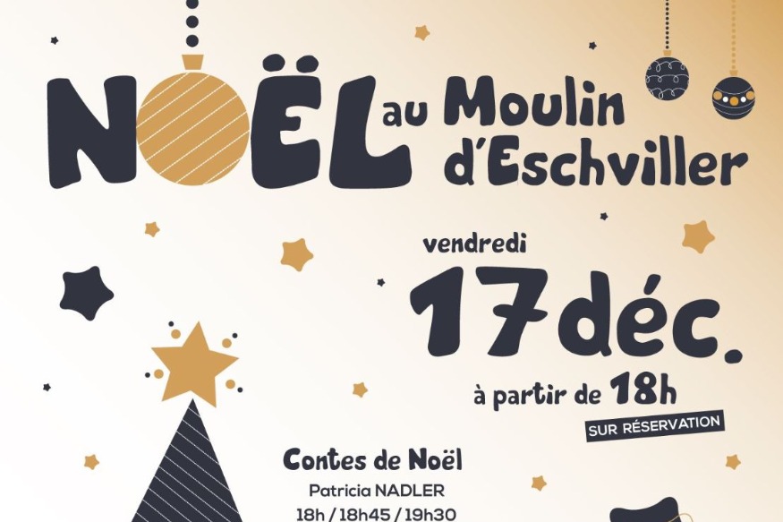 Juste avant les vacances scolaires, le Moulin d’Eschviller vous propose une animation de Noël le 17 décembre. A partir de 18h, laissez-vous enchanter par Patricia Nadler, qui vous contera des histoires de Noël. Les contes durent environ 30 min et il y aura 3 représentations. Une à 18h, une à 18h45 et une à 19h30. Vous pourrez également profiter d’un Spectacle de Feu, présenté par la Compagnie « C’esT pAs nOus ?! ». Le « Restaurant du Moulin d’Eschviller » assurera en continu la buvette et la petite restauration.