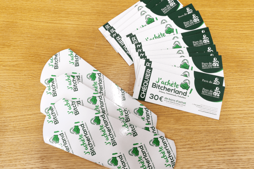 Aujourd’hui au Siège de la Communauté de Communes du Pays de Bitche a eu lieu la remise des chéquiers « J’achète Bitcherland » à 5 entreprises du Pays de Bitche. Ces entreprises ont décidé d’offrir à leurs salariés ces chéquiers d’une valeur de 30€ chacun.