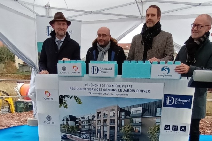 Les Groupes ÆGIDE et EDOUARD DENIS ont posé la 1ère pierre de la future résidence DOMITYS de Sarreguemines le 29 novembre dernier, confortant ainsi sa position de leader des résidences services seniors avec plus de 100 résidences ouvertes en France et à l’étranger (Belgique et Italie).