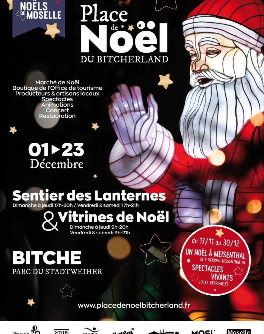 Les Vitrines de Noël et le Sentier des Lanternes sont regroupés autour de la Place de Noël du Bitcherland, fruit d’un partenariat entre la Ville de Bitche, La Communauté de Communes du Pays de Bitche et Tourisme au Pays de Bitche, sous l’égide des Noëls de Moselle > Moselle sans limite > Moselle Attractivité, sur une initiative du Département de la Moselle. L’entrée est gratuite.