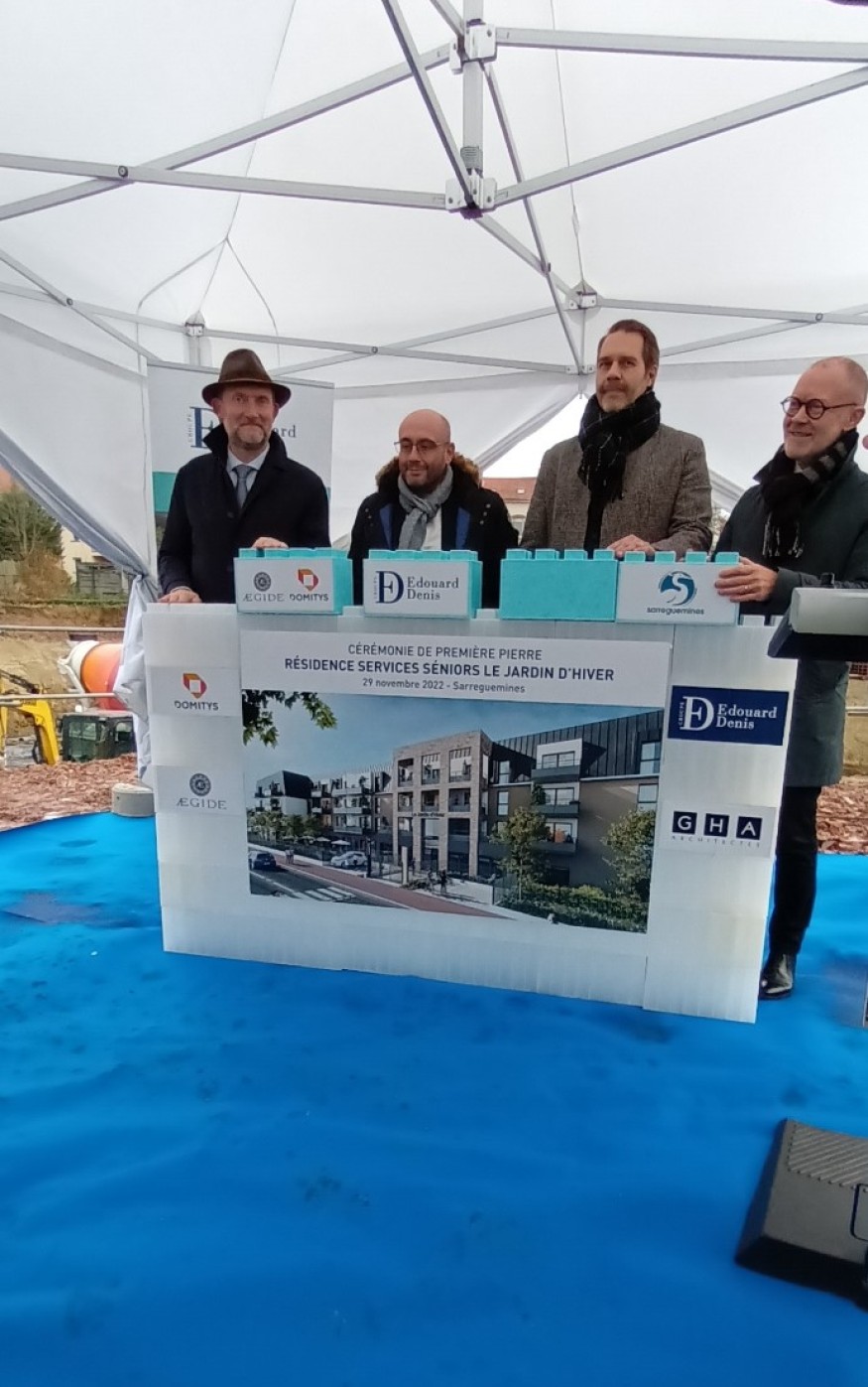 Les Groupes ÆGIDE et EDOUARD DENIS ont posé la 1ère pierre de la future résidence DOMITYS de Sarreguemines le 29 novembre dernier, confortant ainsi sa position de leader des résidences services seniors avec plus de 100 résidences ouvertes en France et à l’étranger (Belgique et Italie).