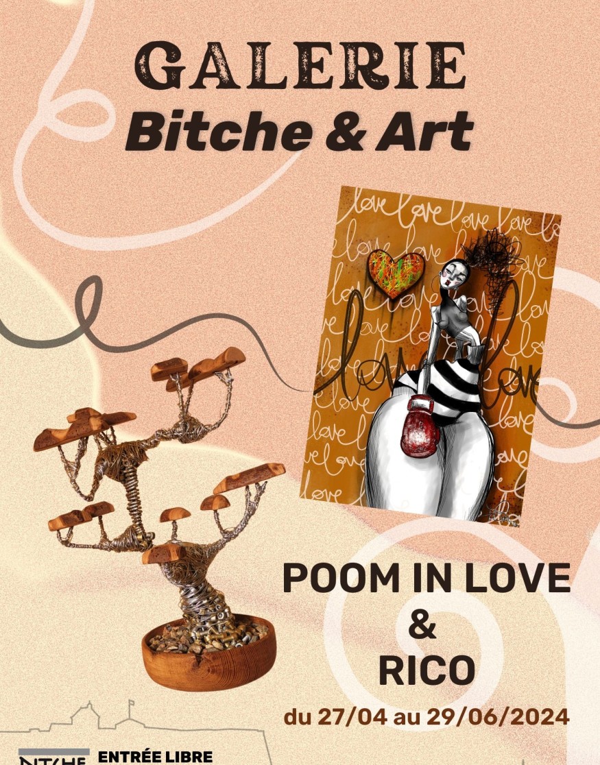 A partir du 27 avril 2024, c’est le retour de Poom in Love à la Galerie Bitche & Art, mais accompagnée cette fois de Rico, un sculpteur autodidacte. Peintures et sculptures vont prendre possession des murs et de l’espace de la galerie d’art bitchoise !