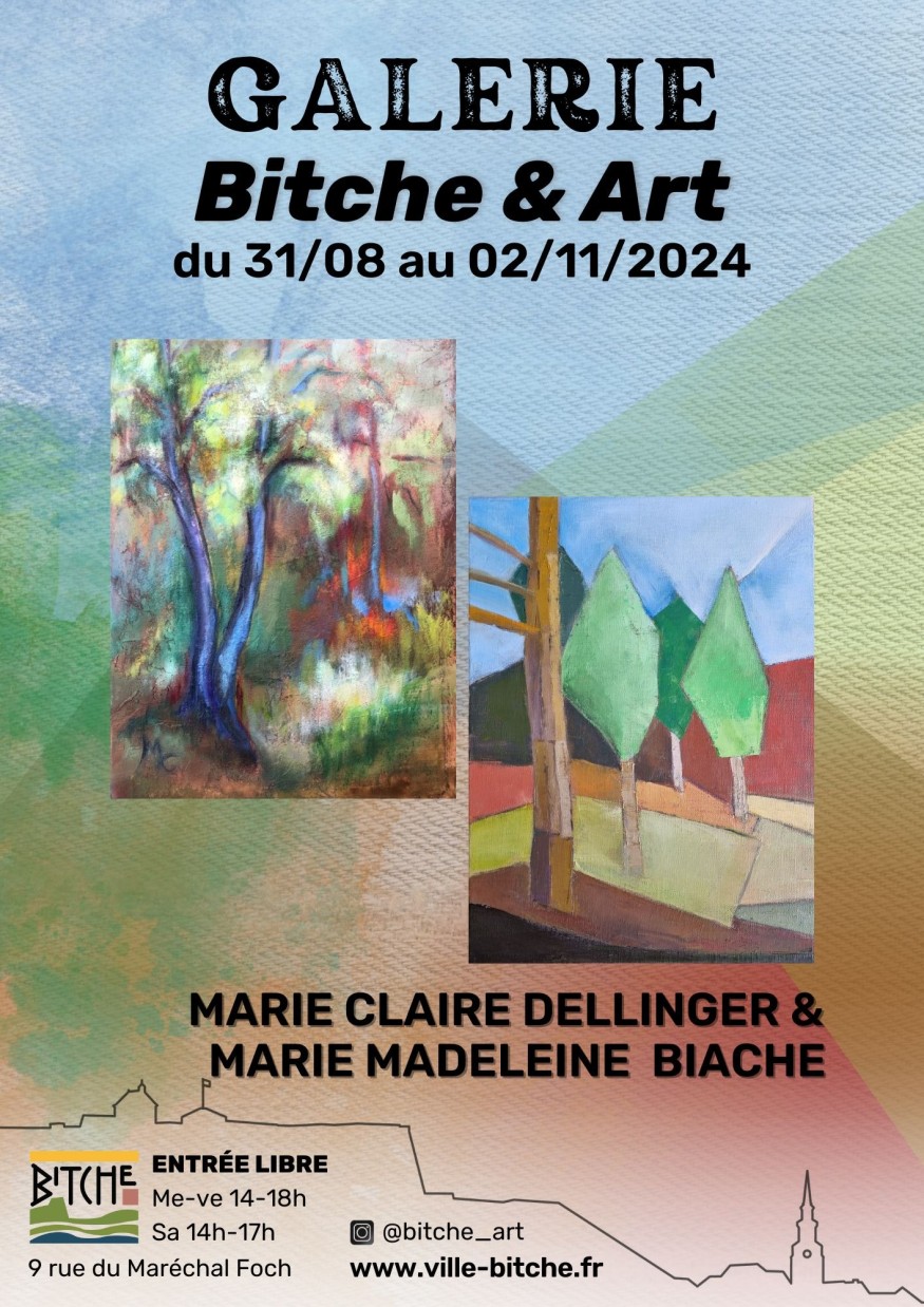 Pour cette nouvelle exposition, la Galerie Bitche & Art accueille à partir du 31 août et jusqu’au 02 novembre 2024, Marie Claire Dellinger et Marie Madeleine Biache, deux artistes peintres originaires du Pays de Bitche et respectivement présidente et membre de l’associations bitchoise CADRE.