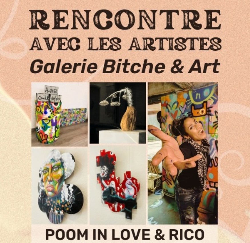Poom in love et Rico, deux artistes qui exposent à la galerie Bitche & Art depuis le 27 avril et jusqu’au 29 juin 2024, vous proposent une rencontre apéritive autour du thème de la biographie d’un artiste le samedi 22 juin, à 17h00.
