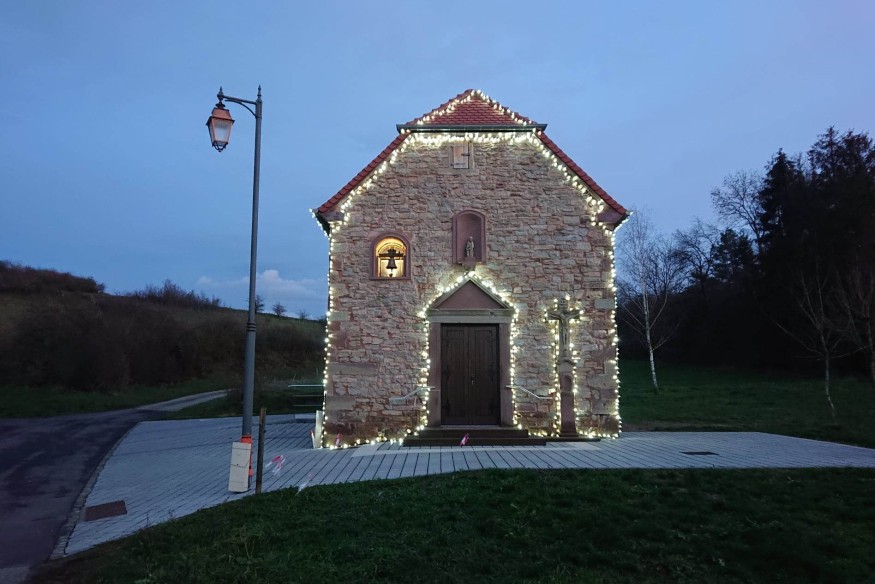 La chapelle Sainte Anne d'Erching - Guiderkirch a revêtu ses habits de lumière le temps des fêtes de fin d'année.