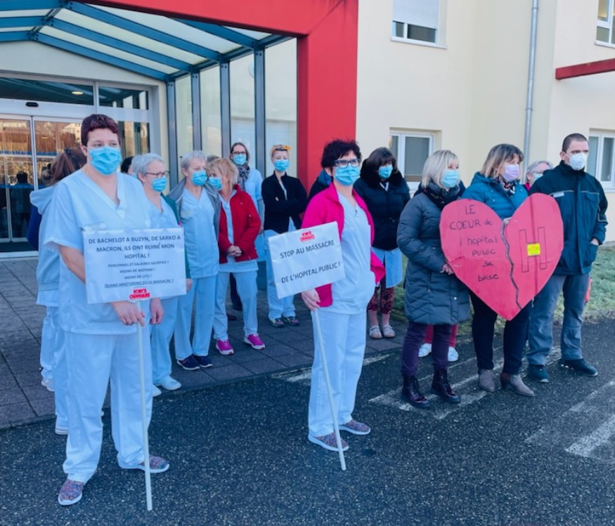 Si dans certaines régions les soignants sont appelés à une journée de grève ce 11 janvier, dans les deux hôpitaux de Sarreguemines, les syndicats Force Ouvrière et de l’AMUF (Association des Médecins Urgentistes de France) appellent à une minute de silence qui dénonce la mort de l’Hôpital Public.